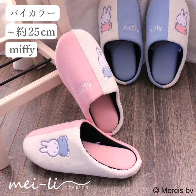 スリッパ ミッフィー 洗える バイカラー 秋 冬 暖かい かわいい 室内 ルームシューズ 1足